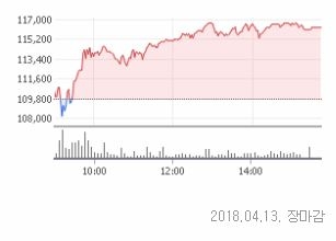 전체 상승 종목 수는 상한가 1개를 포함해 774개, 하락 종목 수는 하한가 없이 380개다. 보합은 78개다.