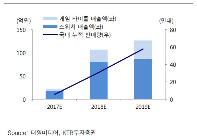 김 연구원은 "대원미디어의 닌텐도스위치와 타이틀 판매량은 각각 5만2000대, 12만6000개로 예상치에 부합했다"고 설명했다.