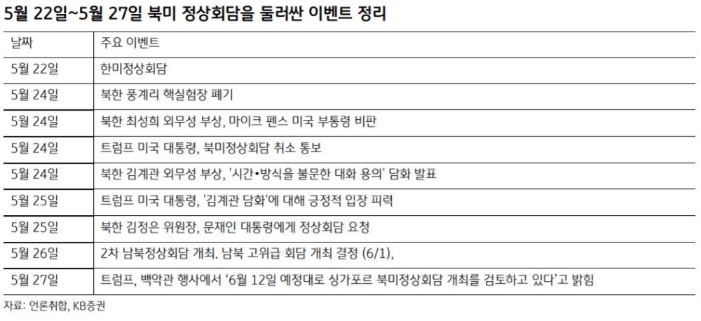 소재용 하나금융투자 연구원은 "결과적으로 한반도를 둘러싼 불확실성이 신속하게 봉합되었고 미국과 북한 모두 대화에 나설 용의가 있다는 점이 긍정적"이라고 진단했다.