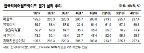 2018년 매출액과 영업이익은 각각 8701억원(+5.5% y-y), 2,530억원(+26.9% y-y, 영업이익률 29.1%) 전망이다.
