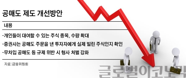 금융위원회와 금융감독원, 한국거래소, 한국예탁결제원, 금융투자협회 등은 공동으로 이같은 내용을 담은 '주식매매 제도 개선방안'을 지난 28일 발표했다. 개인을 상대로 공매도 대여 주식을 확대해 접근성을 높이겠다는 취지다.