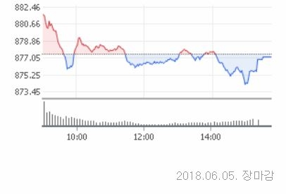 5일 코스닥은 전거래일대비 0.28포인트(0.03%) 내린 877.16으로 장을 마쳤다. 코스닥 지수는 이날 전일대비 4.27포인트(0.49%)오른 881.71로 장을 출발했다. 장중 지수는 등락을 거듭하다가 외국인의 매수세가 약해지면서 소폭 하락 마감했다.