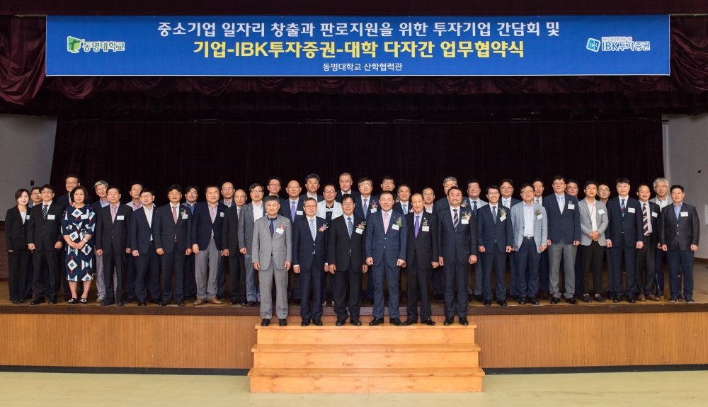 이미지 확대보기IBK투자증권은 부산광역시 남구 동명대학교에서 부산 지역 중소기업과 대기업, 대학간 상호 협력을 위한 투자기업 간담회 및 다자간 업무 협약식을 열었다고 21일 밝혔다.