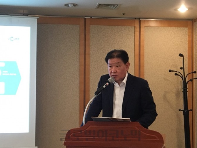 최영권 아이큐어 대표이사는 27일 서울 여의도에서 열린 기자간담회에서 "현재 세계 최고 수준의 TDDS기술을 독자적인 R&D능력을 통해 확보하고 있다"고 설명했다.