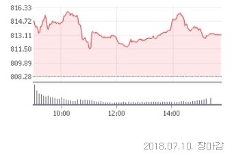 10일 코스닥은 전거래일대비 4.91포인트(0.61%)오른 813.19로 장을 마쳤다. 코스닥 지수는 이날 전일대비 6.28포인트(0.78%)오른 814.56으로 장을 출발했다. 장중 외국인의 매수유입으로 지수는 상승기조를 유지했다.