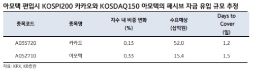 최근 카카오와 카카오M의 합병으로 코스닥150에 새로운 편입종목이 예상된다는 게 KB증권의 분석이다.