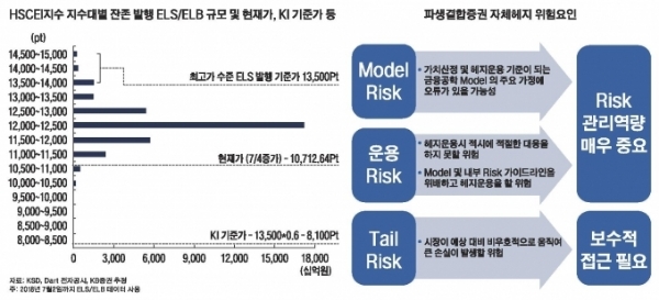 KB증권에 따르면 발행 지수대별 규모는 대부분의 HSCEI지수 ELS는 1만2000~1만2500포인트에서 발행되었다.