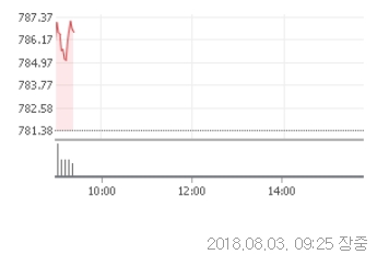 3일 코스닥은 전거래일대비 7.43포인트(0.95%)오른 788.81로 장을 마쳤다.