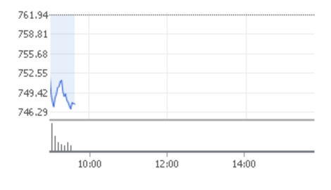 16일 오전 9시 30분 현재 코스닥은 전거래일대비 14.26포인트(1.87%)내린 747.73에 거래중이다.
