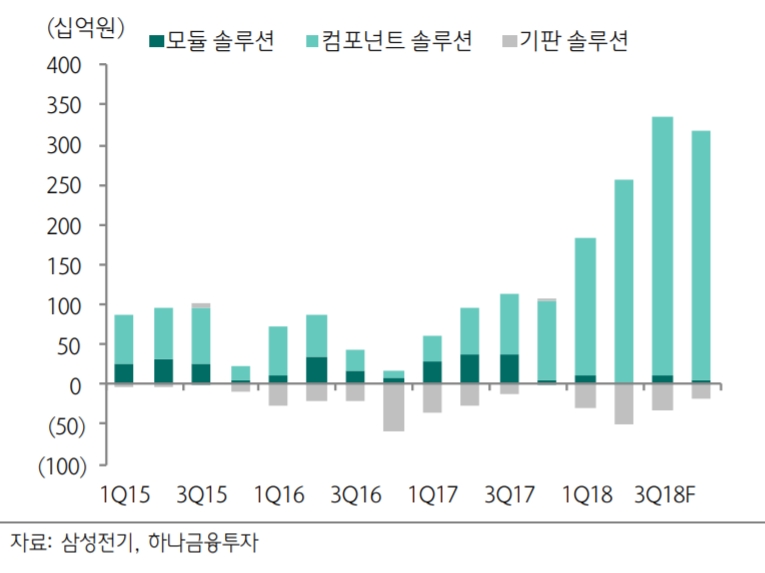 삼성전기의 실적을 견인하고 있는 MLCC의 호황이 지속될 가능성이 높다. 일본 업체인 Murata와 Taiyo yuden의 MLCC가 속한 사업부의 최근 분기(18년 4~6월) 수주잔고액 은 각각 전년동기대비 126%, 70%, 증가했다. MLCC는 지속 증설중이며, 상반기 중에 마무리된 증설 분이 하반기부터 본격 가동될 예정이다.