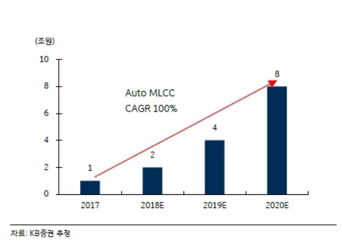 KB증권은 2020년 삼성전기가 중국에 신규 생산능력을 확대해도 전장용 MLCC는 5년 내 공급부족 해소가 쉽지 않을 것으로 전망하고 있다.
