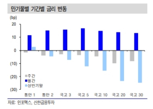 신얼 신한금융투자 연구원은 “외인의 국채선물 매매와 대외 금리 동향의 영향력이 상대적으로 확대될 수 있다”며 “최근 금리 변동 패턴인 장단기물 금리 차별화가 지속될 것”이라고 전망했다.