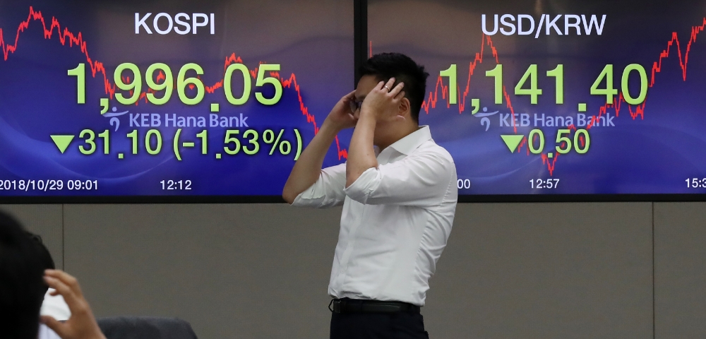 코스닥은 전거래일대비 33.37포인트(5.03%)내린 629.70으로 마감했다. 4거래일 연속 연중 최저치를 경신했다.