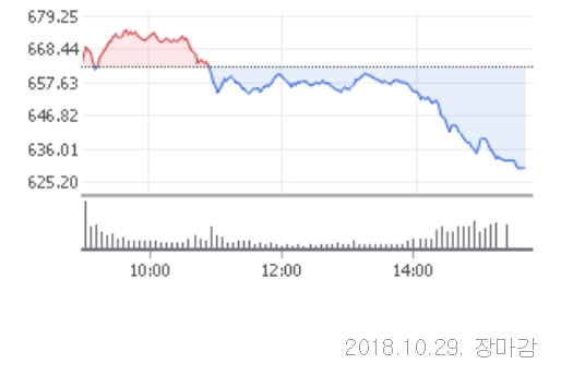 코스닥 지수는 이날 전일대비 0.88포인트(0.13%)오른 663.95로 상승출발했다. 개인 투자자들은 장초반 매수 우위로 하방 압력을 방어했지만 오후들어 그야말로 투매하며 지수는 곤두박질쳤다.