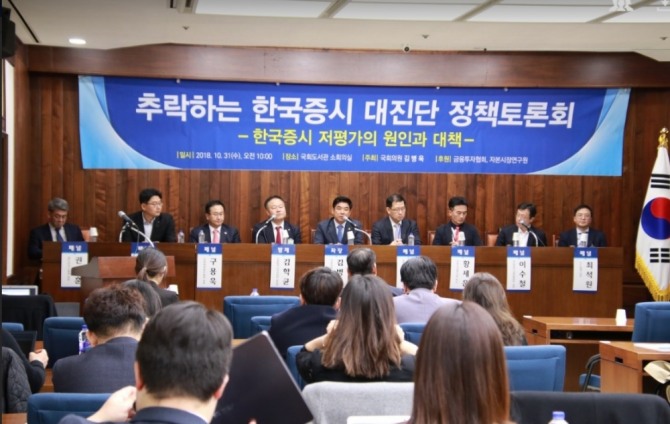 이미지 확대보기31일 서울 여의도 국회도서관에서 열린 '한국증시 대진단 정책토론회'에서는 국내 증시의 저평가가 심각하다는 평가가 쏟아졌다.