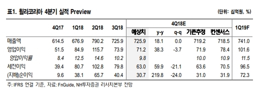 4분기 연결기준 매출 7259억원(18% 전년), 영업이익 712억원(38% 전년)으로 추정된다.