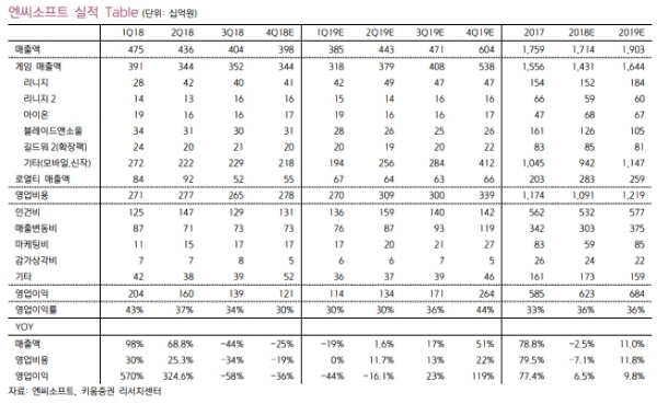 김학준 키움증권 연구원은 “2분기 리니지2M의 신작 출시 이후에는 반기에 1개~2개의 게임들이 이어질 가능성이 높다”며 “상저하고의 실적 흐름이 전망된다”고 말했다.