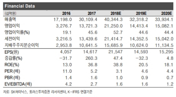 SK하이닉스의 지난해 4분기 예상 실적은 매출액 9조8000억원(전년 +9.0%, 분기 대비 -13.8%),영업이익 4조8000억원(전년 +8.3%, 분기 -25.3%/opm(영업이익률): 49.2%)으로 당사의 기존 추정치(매출액 11조4000억원/ 영업이익 5조7000억원)에서 하향 조정한다.
