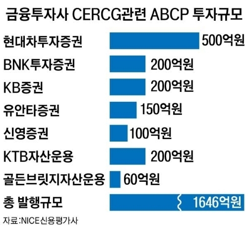 이 ABCP에 투자한 증권사는 총 5곳이다. 현대차증권이 500억원으로 가장 많다. BNK투자증권과 KB증권 200억원, 유안타증권 150억원, 신영증권은 100억원 등을 보유했다.