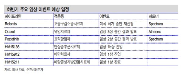 배기달 신한금융투자 연구원은 “하반기에 호중구감소증치료제 ‘롤론티스’의 미국 허가 승인재신청과, 항암제 ‘포지오티닙’의 임상 2상 중간 결과의 발표도 예상되는 등 연구성과가 점차 가시화되고 있다”며 “지나간 계약 해지보다는 새로운 연구개발의 성과를 기대할 시점”이라고 말했다.