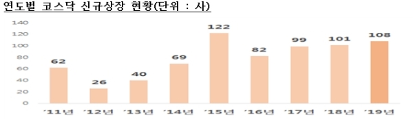 코스닥신규상장 기업수 108개사, 공모금액 2조6000억 원