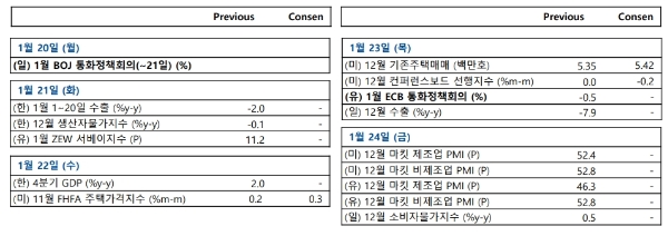 다음주 주요 일정을 보면 중국춘절이 24일부터 30일까지다. 중국 춘절을 맞아 주요 제조업은 15일부터 내달 8일까지 휴가인 경우가 많다.