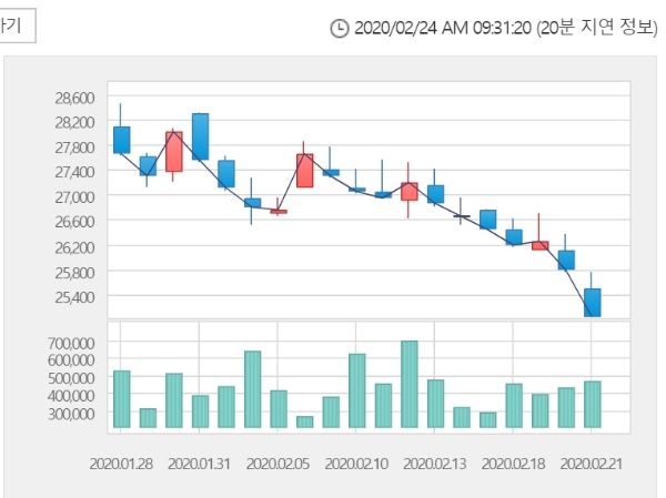 이미지 확대보기한국거래소에 따르면 강원랜드 주가는 27일 오전 9시 27분 현재 전거래일 대비 2.79% 내린 2만4350원에 거래되고 있다.