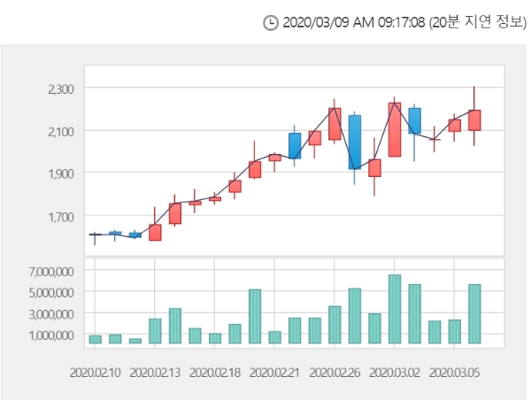 한국거래소에 따르면 두올산업 주가는 9일 오전 9시 14분 현재 전거래일 대비 21.92% 오른 2660원에 거래되고 있다.