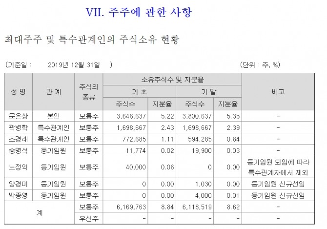 이용한 전 대표는 2008∼2009년 대표이사를 지냈다. 곽병학 전 감사는 문은상 신라젠 대표이사의 친인척이다, 곽 전 감사는 2012∼2016년에 감사와 사내이사를 역임했다. 곽병학 전감사는 아직도 주식을 보유하고 있다. 신라젠의 주주는 문은상 곽병학 조경래 송명석 노정익 양경미 박종영 등이다.
