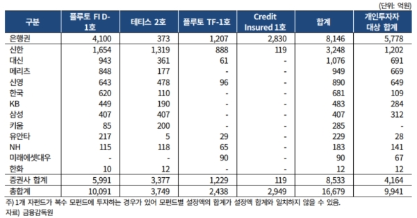 아직 전체 출자 금액 확정되지 않았다. 여기에 우리은행, 신한금융투자, 신한은행, 대신증권, KB증권 등 판매사별로 판매금액으로 출자금을 정할 계획이다.