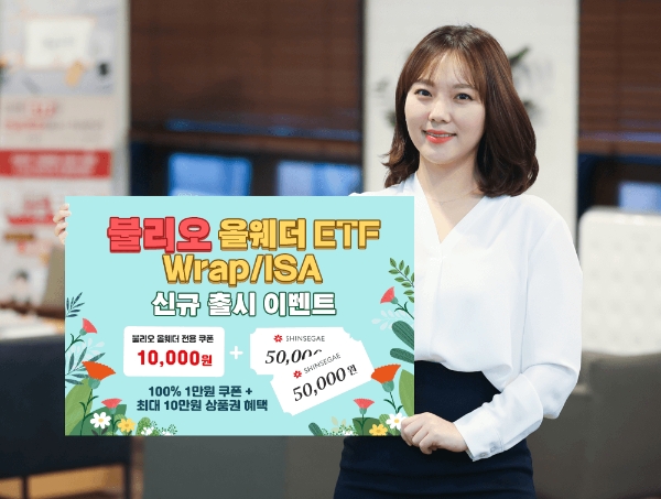 이번 이벤트는 ‘불리오 올웨더 ETF Wrap/ISA’ 가입시 누구나 1만 원 쿠폰 혜택을 받을 수 있고 가입금액에 따라 최대 10만 원 백화점 상품권도 증정한다.