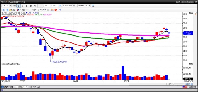 트위터 일간차트. 사진=이베스트투자증권 HTS이미지 확대보기