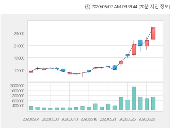 이미지 확대보기2일 한국거래소에 따르면 대우조선해양은 이날 오전 9시 29분 현재 전거래일 대비 16.28% 오른 2만7850원에 거래되고 있다.