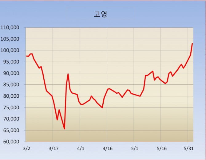 검사장비업체 고영은 전일 5%대 상승에 이어 이날 6.02% 상승하며 상승세를 이어가고 있다.