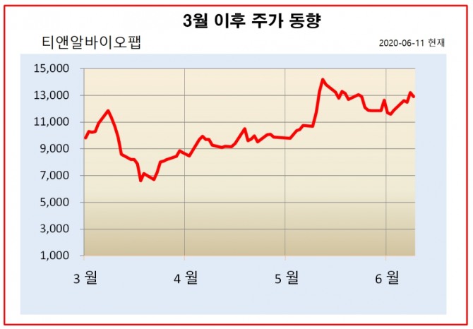 한국거래소에 따르면, 티앤알바이오팹의 주가는 올해들어 주가가 약 29% 상승했으며, 지난달에 비해서는 9% 올랐다.