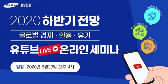 이미지 확대보기삼성선물은 이달 23일 오후 4시부터 유튜브 생방송을 통해 하반기 경제·환율·유가 전망 온라인 세미나를 진행한다고 15일 밝혔다.