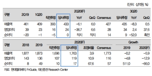 대신증권은 2분기 연결 실적은 매출액 4332억 원(-6.1% 이하 전년 대비) 영업이익 244억 원(-36.4%)으로 추정하고 있다. 이는 시장추정치(영업이익 279억 원)를 밑도는 수준이다.