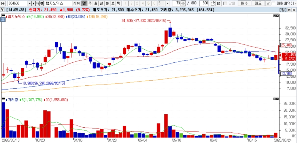 이미지 확대보기이날 오후 2시 9분 현재 랩지노믹스는 전일대비 10% 이상 상승해 거래중이다.