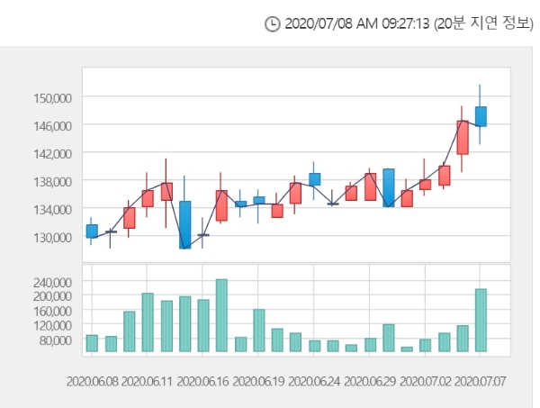 하루만에 오름세다. 장중 15만3500원까지 오르며 52주 신고가를 경신했다.