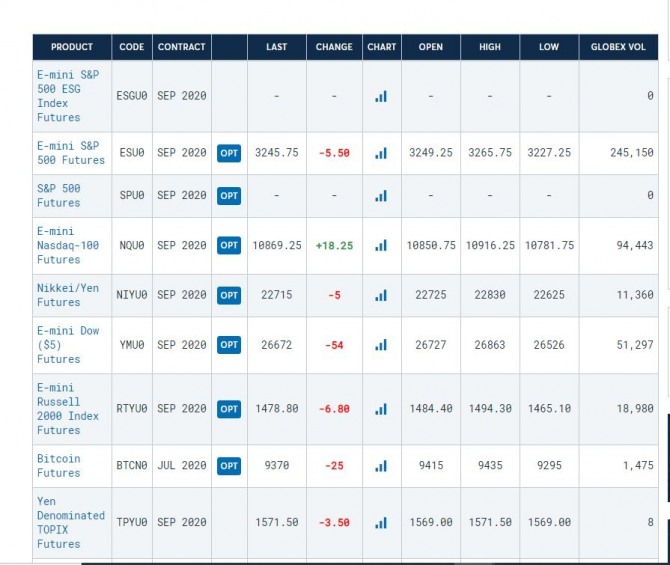 E-mini S&P 500 Futures ESU0 SEP 2020 SEP 2020 3245.75 -5.50