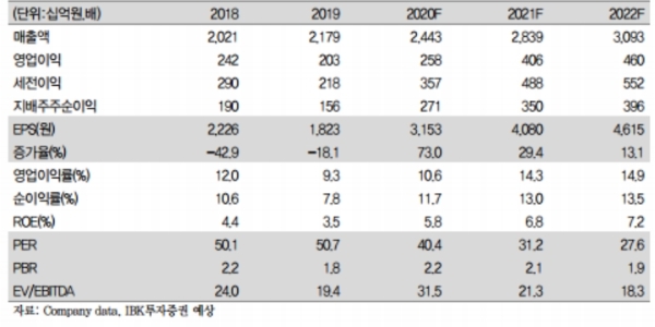 IBK투자증권은 2분기 매출액 6128억 원(+16.5%, 이하 전년 대비), 710억 원(+113.8%)으로 시장기대치를 웃돌 것으로 추정하고 있다.