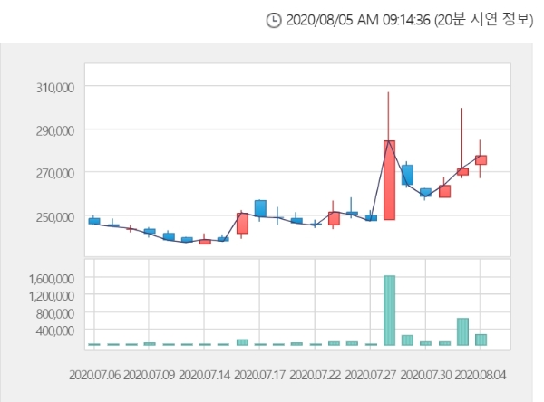 대규모 기술계약체결이 투자심리에 영향을 미치는 것으로 보인다.