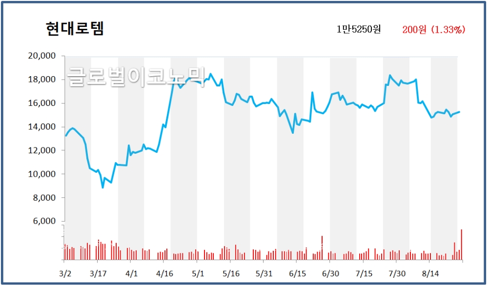 현대로템은 31일 개장 초 전 거래일 대비 1.33% 상승한 1만5250원에 거래되고 있으며, 지난달 말일 주가인 1만8050원에 비해서는 -15.51% 하락했다.