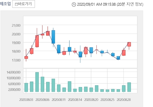 이미지 확대보기1일 한국거래소에 따르면 디피씨 주가는 이날 오전 9시 11분 현재 전거래일 대비 5.53% 오른 2만50원에 거래되고 있다.