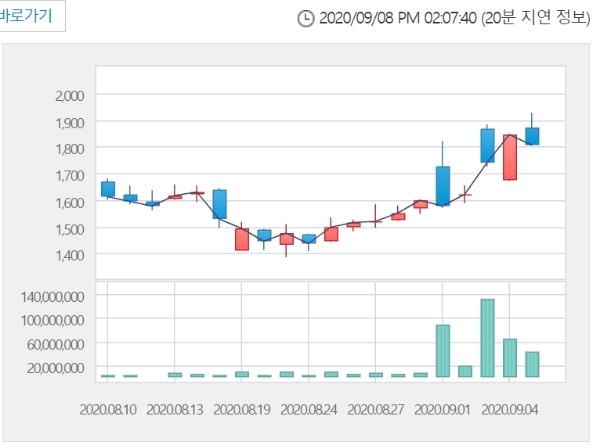 이틀째 오름세로 가격제한폭까지 오른 상한가다.