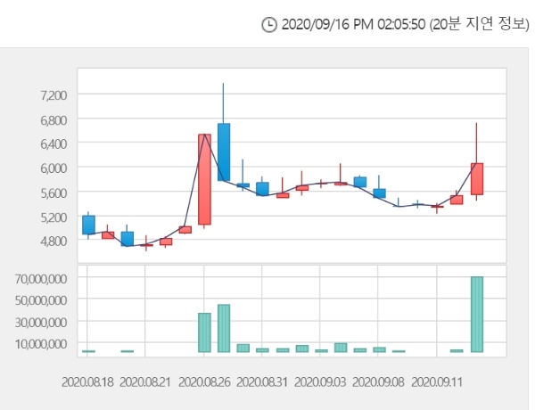 이틀째 급등세로 가격제한폭까지 오른 상한가다.