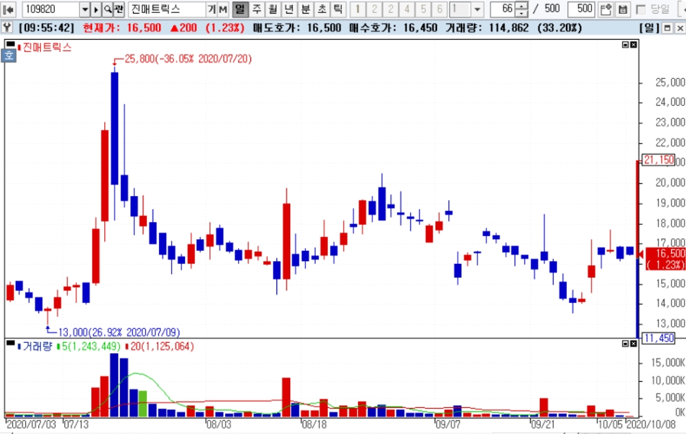 이미지 확대보기오전 9시 57분 현재 진매트릭스는 전일 대비 200원(1.23%) 상승한 1만6500원에 거래 중이다.