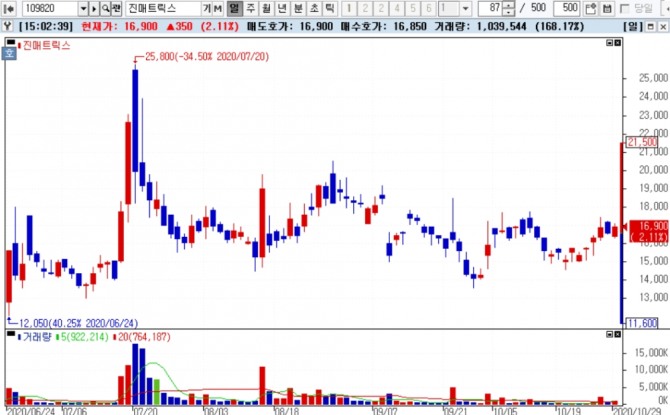 이미지 확대보기29일 주식시장에서 진매트릭스는 코로나19와 독감을 동시에 진단하는 제품이 유럽 인증을 받았다는 소식에 상승세를 보이고 있다.