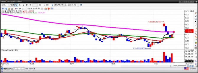 16일(현지 시각) 뉴욕증시에서 세계 최대 크루즈 선사인 카니발은 6시 41분 현재 5.37% 오른 16.87달러에 거래되고 있다. 이와 함께 노르웨이 크루즈라인 홀딩스, 로얄 캐리비언 크루즈도 각각 3.46%와 4.69% 상승하고 있다.