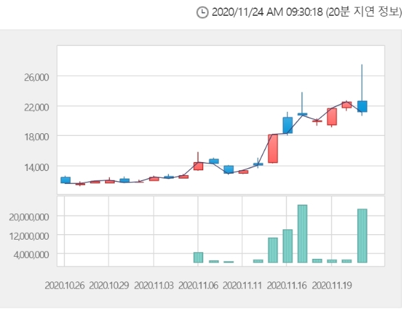 이미지 확대보기24일 한국거래소에 따르면 소마젠 주가는 이날 오전 9시 24분 현재 전거래일 대비 3.78% 오른 2만1950원에 거래되고 있다.